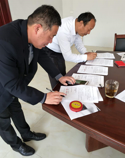 在縣百企辦逯亞森主任、大河屯鎮(zhèn)黨委張珀副書記、申沖村申慶振主任的見(jiàn)證下,各方與公司共同簽署了相關(guān)協(xié)議,正式將本批物資轉(zhuǎn)交給了申沖村委。
