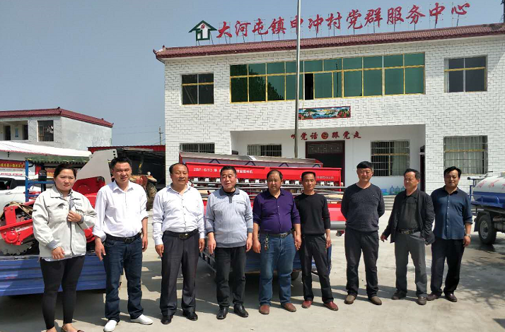 協(xié)議簽署好后,公司郭經(jīng)理、公司工會(huì)主席耿莉莉同縣百企辦逯亞森主任、大河屯鎮(zhèn)張珀副書記、申沖村申主任以及申沖村拖拉機(jī)手合影。