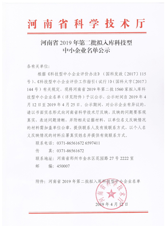 公示.南陽(yáng) | 河南省2019年第二批擬入庫(kù)科技型中小企業(yè)名單公示