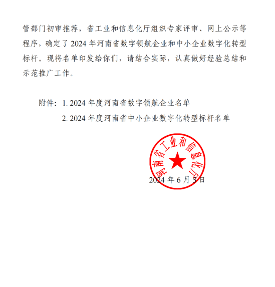 河南省省級(jí)中小企業(yè)數(shù)字化轉(zhuǎn)型標(biāo)桿企業(yè)