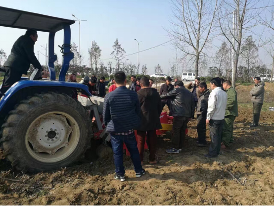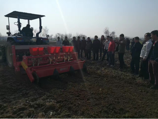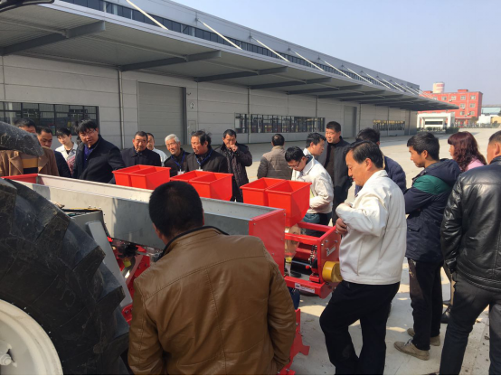 現(xiàn)場會上,亞澳專業(yè)技術(shù)人員及銷售經(jīng)理對我廠新研發(fā)的花生精量播種機做了詳細(xì)介紹,各鄉(xiāng)鎮(zhèn)社員及各站站長針對花生種植技術(shù)、施肥方法和機械化播種等方面做了詳細(xì)講解。隨后,60名用戶和農(nóng)技人員一同觀摩了機械化播種演示。