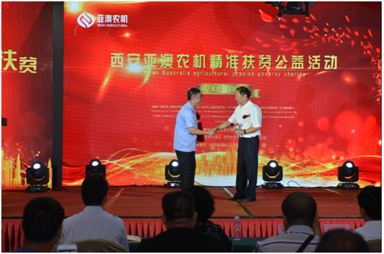開機儀式上,中國農機化協(xié)會還就“甘肅省蘭州市永登縣”精準扶貧工作給予亞澳高度的認可。永登縣團莊村屬干旱貧困山區(qū),全村現(xiàn)有7個村民小組,421戶、1696人。近年來,幫扶單位先后捐贈了30多臺(套)特色農機具,但仍缺少大中型農機具,農機化服務能力不足,不能滿足農業(yè)生產(chǎn)需求。此次中國農業(yè)機械化協(xié)會聯(lián)合亞澳公司等有關單位向團莊村捐贈價值40多萬元農業(yè)機械,必將對團莊和周邊鄉(xiāng)村農業(yè)和農村經(jīng)濟發(fā)展、全面建設小康社會起到很大地推進作用。