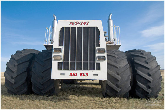 BigBud 747:當(dāng)年購置這臺拖拉機(jī)花費了30多萬美金,要知道這是在四十多年前,放到現(xiàn)在的話需要300多萬美金。之所以取名“747”是為了與當(dāng)時最大的噴氣客機(jī)“波音747”相呼應(yīng),來顯示它的巨大。